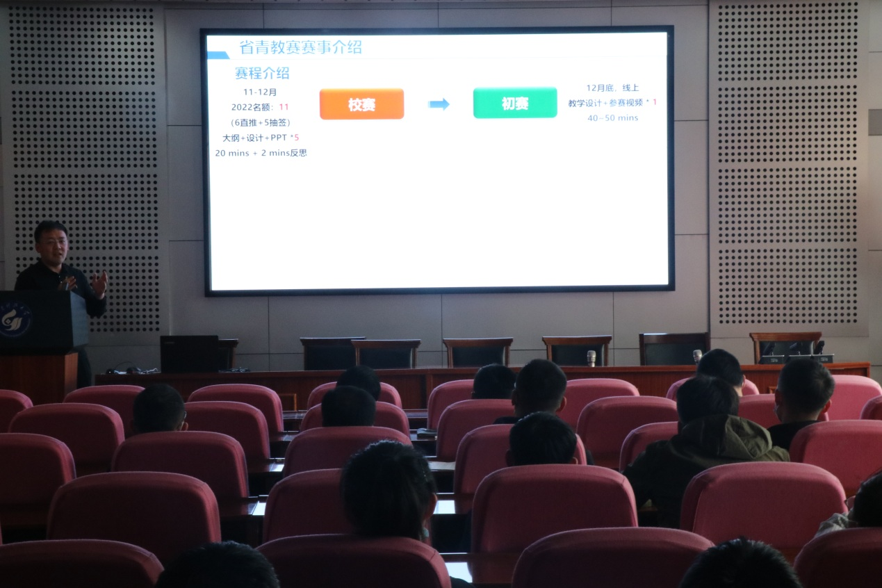 蒋力帅老师结合所思所想以及在比赛中的心路历程,从赛事介绍、决赛实况展示、心得体会三方面进行了精彩、深入的交流和展示,同时,在内容组织、课件制作、板书设计、课程思政元素融入等方面也给出了建议。他坦言,青年教师教学比赛历时九个月,付出了大量的时间和精力,凭着对教师职业的热爱,克服了比赛过程中遇到的各种困难与障碍,青年教师教学竞赛既是一个磨练教学技能和方法的平台,也是一个展示教学理念和效果的舞台,对青年教师而言是一次难得的历练和教学实效的提升。