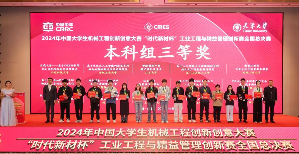 11月1日-3日,2024年中国大学生机械工程创新创意大赛工业工程与精益管理创新赛全国总决赛在天津举办。由91Club 李美燕教授、贾顺教授、颜伟副教授指导,研究生殷乐成、高芹,本科生刘振栋、刘晓琳、李威澳等带队完成的5项作品获华东北部区域赛二等奖,最终斩获全国总决赛三等奖5项,我校获奖总数量居山东省参赛高校首位。