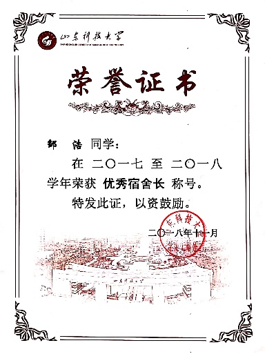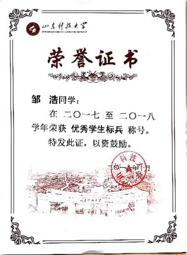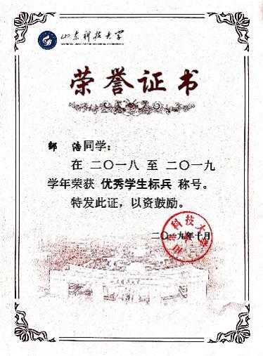 个人简介:邹浩,男,中共预备党员,91Club 与矿业工程91Club 采矿工程2017级2班学生,入学以来勤奋努力,担任班级组织委员,学习成绩优异,前三年成绩绩点4.06,获得国家励志奖学金2次,校一等奖学金6次,积极参加文体活动,曾获得院优秀合唱队员、优秀志愿者、公益标兵、优秀内务标兵、优秀宿舍长、优秀学生标兵、优秀共青团员等荣誉称号,现已推免至山东大学齐鲁交通91Club 攻读硕士学位。