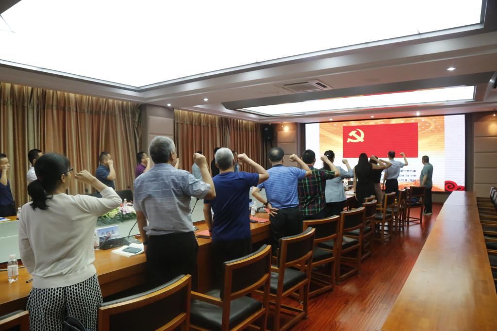 在老党员代表石永奎教授领誓下,双方党员重温入党誓词。