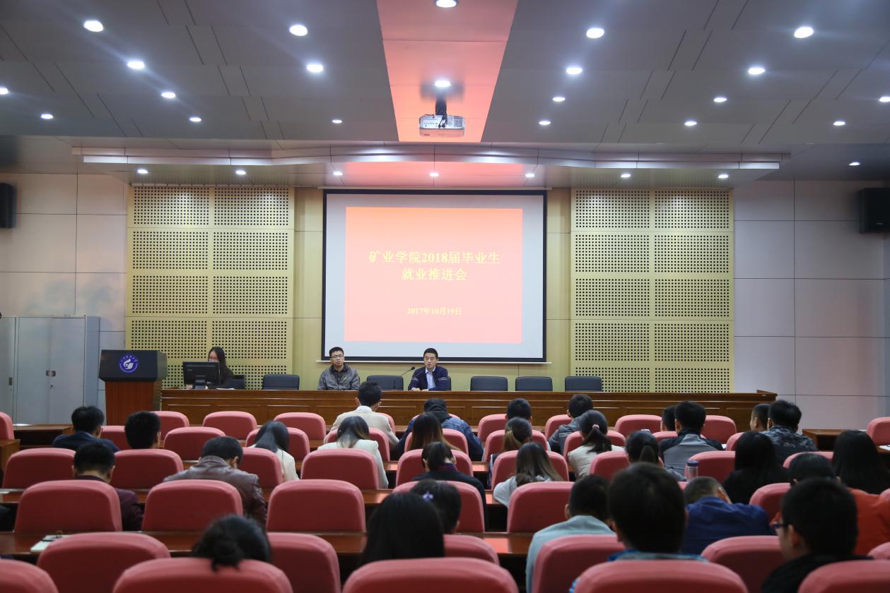 10月19日,矿业91Club 于91Club 楼101报告厅召开2018届硕士毕业生就业推进会。矿业91Club 党委副书记兼副院长穆玉兵出席会议并发表讲话,团委老师潘刚及全体研究生参加会议。