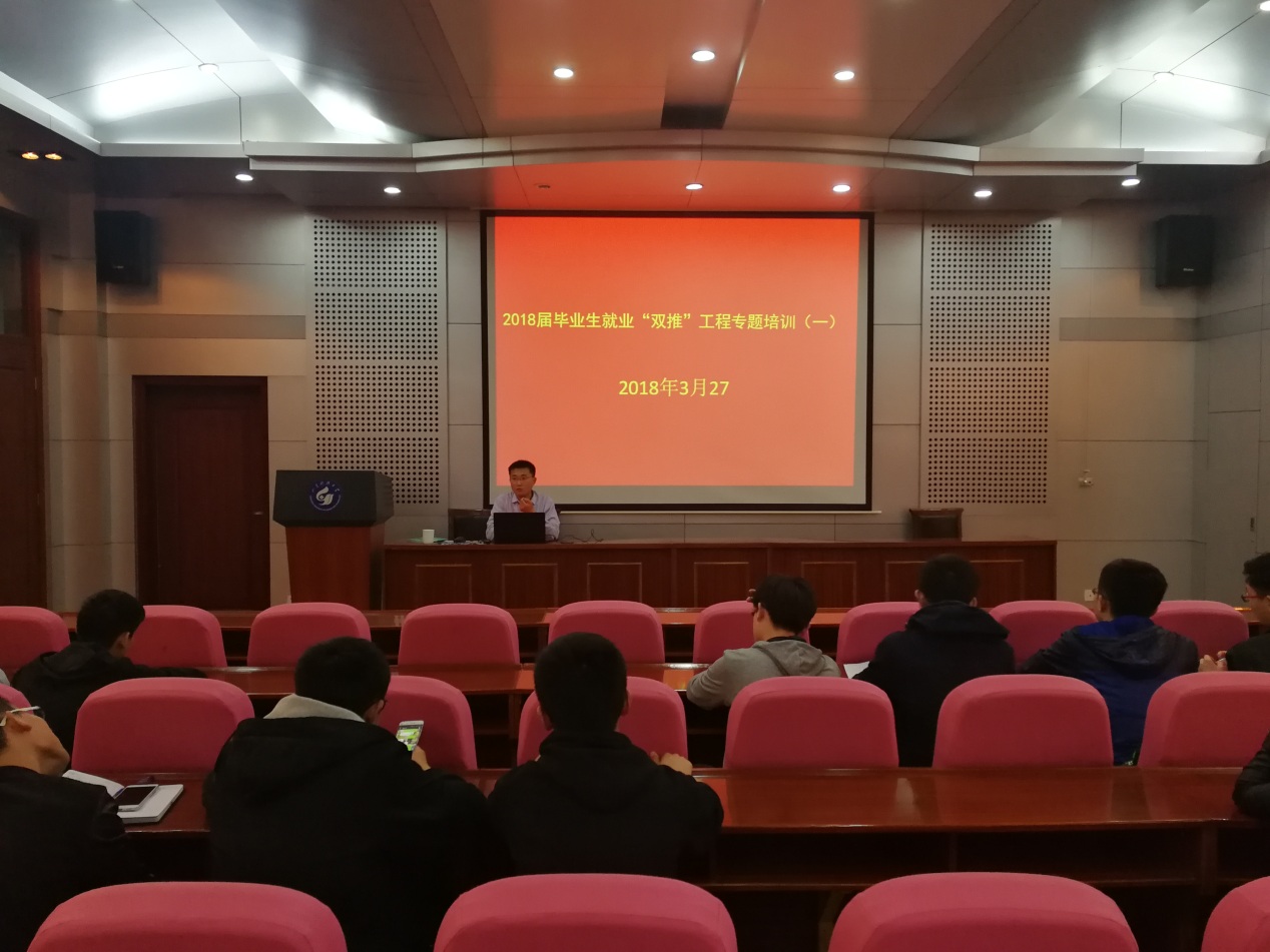 3月27日,矿业91Club 在91Club 楼319报告厅开展毕业生就业“双推”工程专题培训会,院团委书记马鹤作了题为“党员精准就业帮扶”的报告,2018届全体党员毕业生参加。