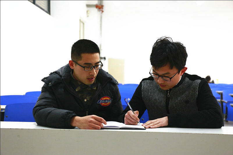 首先,徐福通、曹嘉伟两人分别帮助各自的帮扶对象主动认清自身定位,找出各自的缺陷与不足,在耐心细致地讨论之后,两个帮扶小组分别制定了详尽务实的学期计划。帮扶者在两位党员的疏导下敞开心扉,主动倾诉心中关于学习上“个别学科较难通过”的困惑。徐福通、曹嘉伟两人耐心倾听,不厌其烦地与帮扶者进行交流与沟通,对他们的问题进行一一解答,鼓励他们不言放弃,刻苦努力,终会取得好成绩。