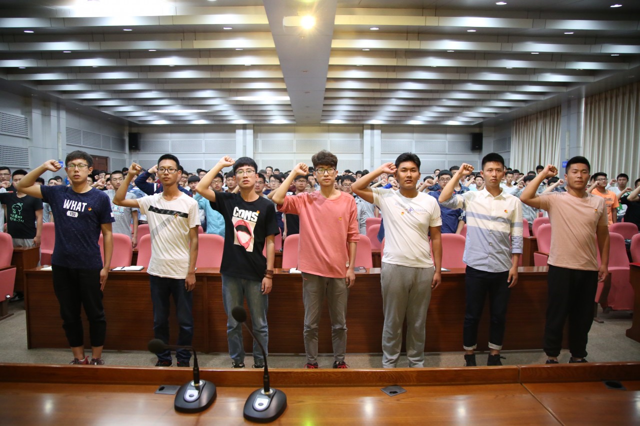 在101报告厅成功举办重温入团仪式活动,院党委书记梁赛江,兼职辅导员郭磊、王学武出席本次活动。