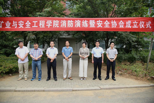 举办消防演练暨安全协会成立仪式。校学生工作处副处长卜文峰,工会副主席徐海燕,保卫处副处长王春暖,矿业91Club