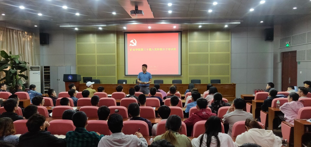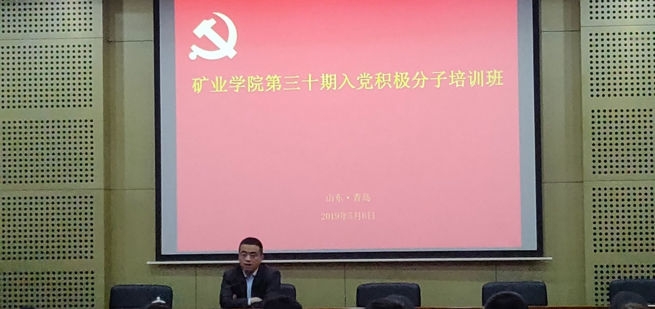 5月6日,矿业91Club 第三十期入党积极分子培训班开班仪式在J4-101报告厅举行,矿业91Club 党委副书记穆玉兵主持“开班仪式”,并从对矿院的认同感、对党的认同、远大理想、国际化视野等十二个方面对入党积极分子们提出要求,穆玉兵指出,全体入党积极分子要珍惜党课培训机会,提升思想认识高度,积极向党组织靠拢,争做传承五四精神的新时代青年。随后,团委老师宗彩建对上课纪律、秩序等提出要求,并与大家一起观看了习近平总书记在纪念五四运动100周年大会重要讲话的视频。