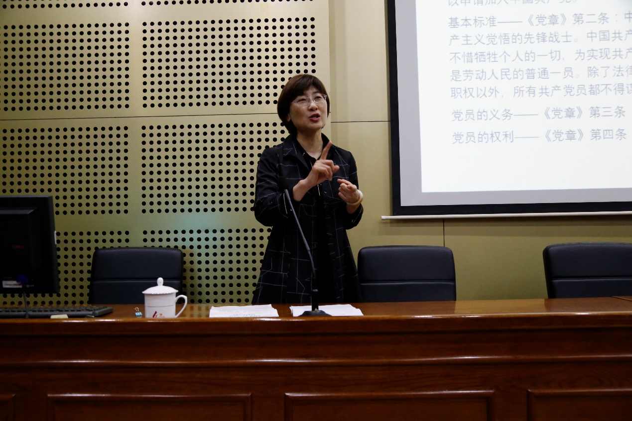 5月8日,在J4-101报告厅举办培训班第二讲,学生工作处处长王震应邀担任主讲。她向入党积极分子们讲解了成为中国共产党党员的基本条件以及在政治思想、学习成绩、社会工作、日常表现、群众基础方面的标准。并结合当今社会现实和中国历史事件,详细地阐述了共产党员享有的八项权利和必须履行的八项义务。她指出,党员的权利和义务相互联系,相互依存,两者是辩证统一的,是一个不可分割的整体,将两者对立起来、割裂开来的做法都是不正确的。最后王震强调入党动机分子要端正入党动机,增强党性修养,争取早日成为一名真正的共产党员。