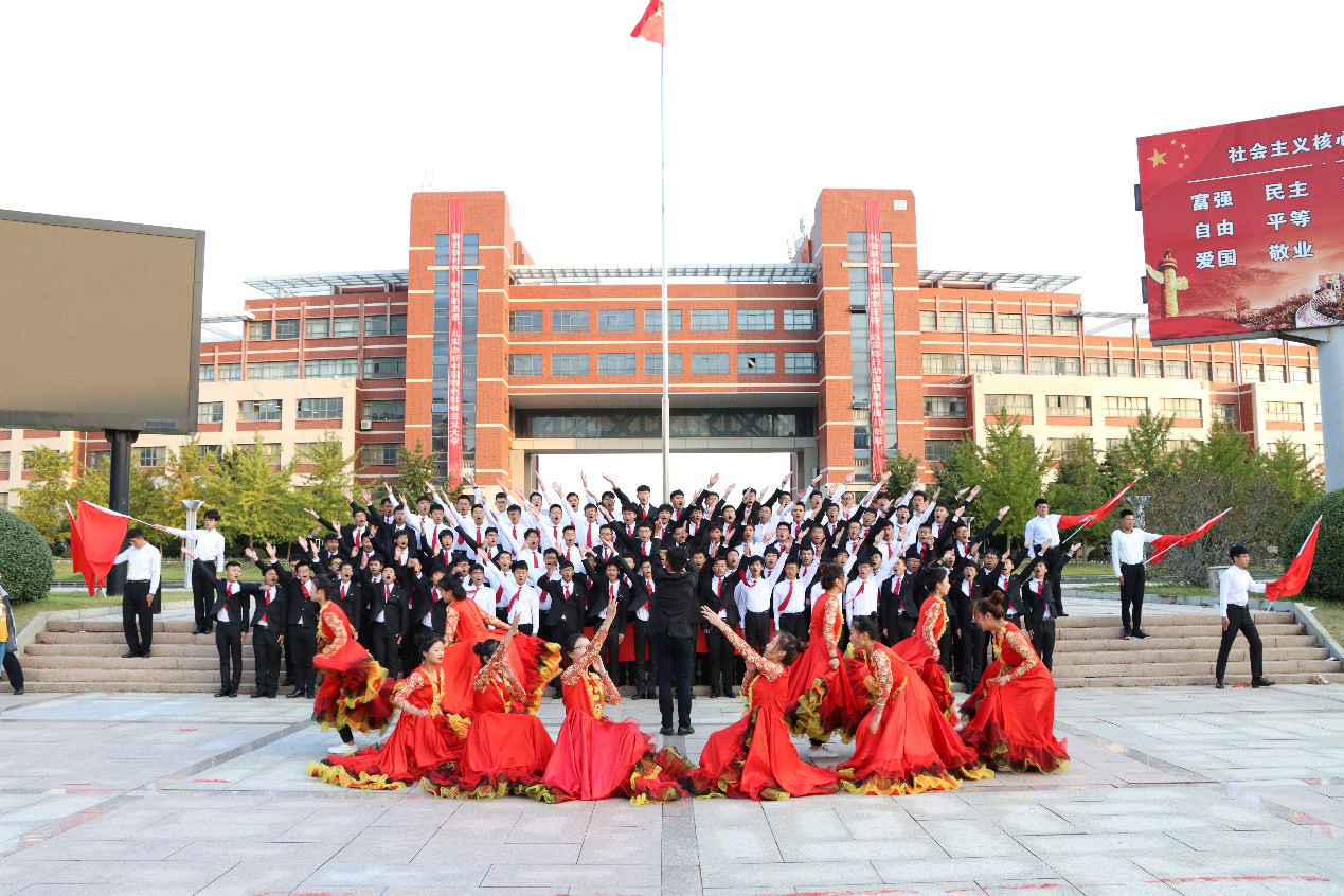 退役复学学生领唱,全院学子集体合唱《歌唱祖国》,在嘹亮的歌声中,升旗仪式正式结束。