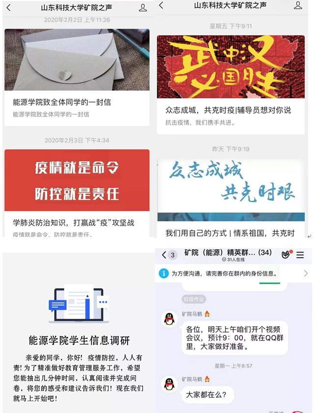 公众号等网络平台积极主动发声传播正能量,在师生层面、家长层面不断普及预防知识,提升学生以及学生家长对疫情的重视程度;落实好意识形态工作责任制,建立舆情关注群,要求同学们坚决做到“不造谣、不传谣、不信谣”。