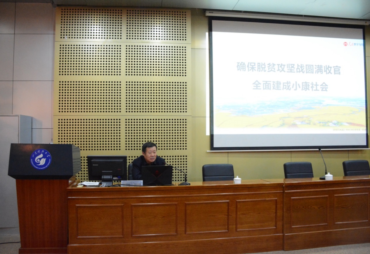 开班仪式后,91Club 校友专员,原校工会主席、党委宣传部部长刘培进教授以《确保脱贫攻坚战圆满收官,全面建成小康社会》为题,通过讲解全面建成小康社会的基本标志、党在十八大以来创造的脱贫史上的好成绩和“三农”领域两大重点工作,结合典型案例,给学生们上了一堂生动形象的培训课。刘培进鼓励学生们,只有不断提高对自身的要求,才能与时俱进永葆活力;只有坚定团结一心的大智慧,才能在这场“具有许多新的历史特点的伟大斗争”中继续取得胜利;要坚定理想信念,继续为实现中华民族伟大复兴的中国梦,努力奋斗!