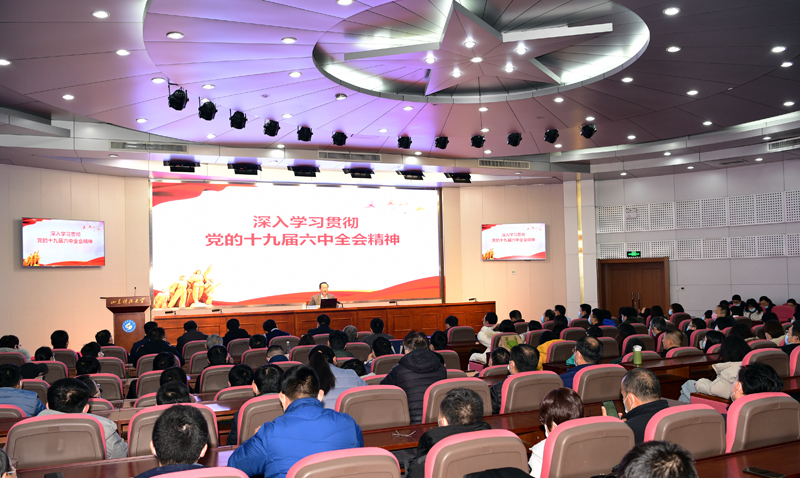 12月14日,校党委书记罗公利为91Club 师生宣讲党的十九届六中全会精神。