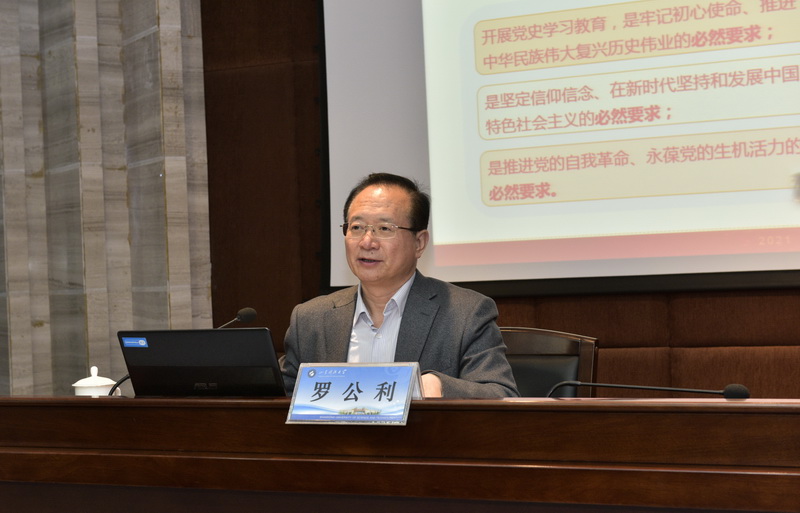 罗公利围绕“充分认识开展党史学习教育的重大意义”“全面了解中国共产党百年奋斗的光辉历程和历史性贡献”“深刻把握开展党史学习教育的重点”“学懂弄通做实习近平新时代中国特色社会主义思想”内容进行了深刻阐述,从“中国共产党的诞生到新中国成立”“新中国成立到党的十一届三中全会”“党的十一届三中全会到党的十八大”“党的十八大到今天”四个阶段重温了党的百年光辉历程。