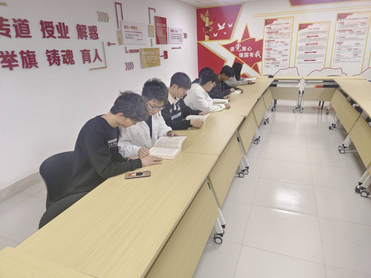 为进一步推动同学们深入学习贯彻习近平新时代中国特色社会主义思想,学生会近期组织开展了一系列读书活动。通过研读《习近平著作选读》《论党的青年工作》等重要著作引导同学们进一步坚定理想信念。