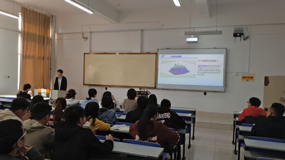 李庆显针对数学建模这一方面开展报告,他从团队的组建,相关建模软件的推荐,到建模题目的选择、分析、分工,再到论文的写作、排版都进行了详尽的说明,并展示自己之前参与建模的论文供大家学习。李庆显指出,建模过程与结果相比,更重要的是在过程中收获新知识、了解新方法。