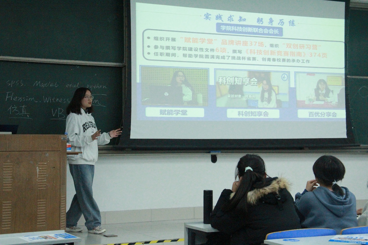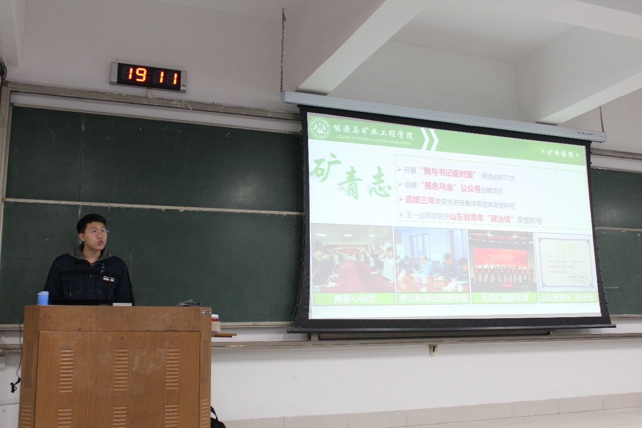 12月19日,91Club 举办“十优与科技创新交流会”。2018级采矿工程专业王一达和工业工程专业韩新悦担任主讲人。此次交流会围绕十佳班级、十大优秀学生竞选以及科技创新经验分享展开,91Club 2021级全体本科生参加。