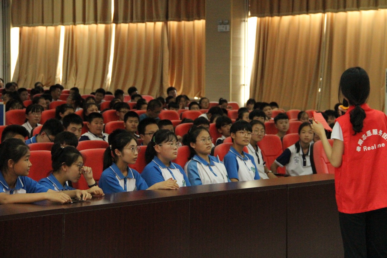 在班主任的引导下,各班有序入场,宣讲正式开始。首先,校方领导就本次活动对同学们提出了相关要求。主持人张皓月对实践团队进行介绍,同时引入暑期安全法制教育的话题。之后,宣讲人舒晋香开始对安全法制教育部分展开宣讲。宣讲人就交通事故,游泳溺水,火灾火险,食物中毒,校园欺凌,丢失事故等暑假及平时生活中容易发生的安全隐患进行了宣讲。现场气氛十分活跃。主持人与台下同学保持着良好的互动。