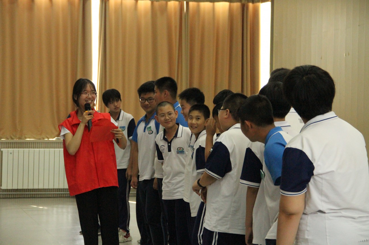 经历过多次排练以及短暂的休息调整之后,很快就到了学生们进来的时间了。其中赵健威,赵越负责在门口引导,潘竹田在宣讲厅引导入座,马豪悦,李若曦则负责颁发奖品,而孙言红负责摄影。同时,本次宣讲活动的主要宣讲人及队长则在礼堂前方和学校负责人交流活动安排,商量活动事宜。