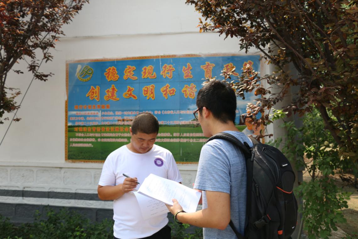 向村民发放问卷