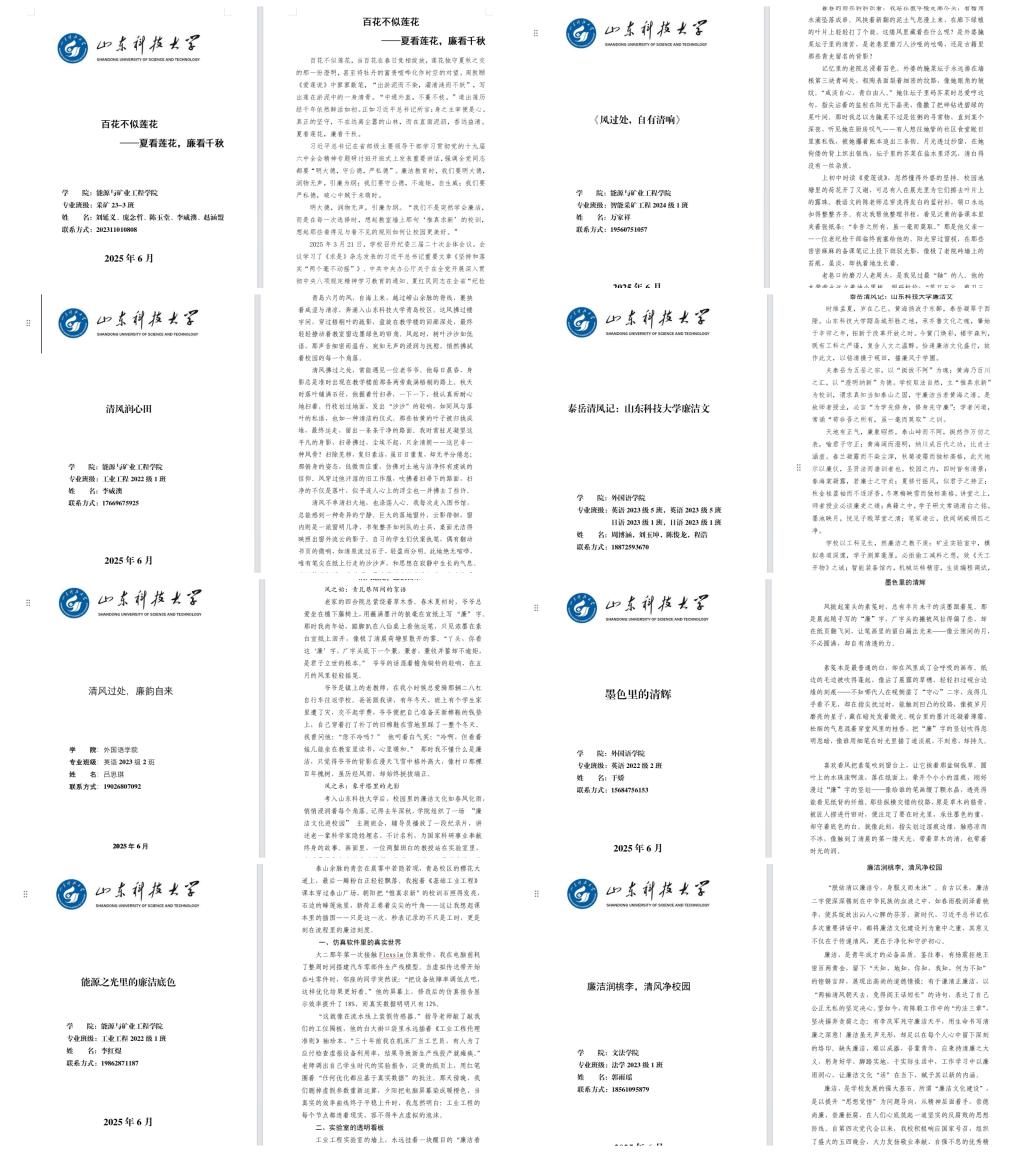 嘉源驿站内,清雅宁静的环境为创作提供了理想空间。同学们于书案前凝神运思,将“廉洁”这一宏大命题融入细腻笔端。他们或剖析历史长河中清官廉吏的卓然风骨,或结合专业所学,阐述强国建设中诚信守法、拒腐防变的职业坚守,字里行间流露出对清廉操守的真诚向往与坚定追求。一篇篇饱含深情的文字,既是对中华优秀廉洁文化的深情回望,更是对未来肩负强国重任时所需职业伦理与道德底线的清醒认知与庄严承诺。采矿工程2024级本科生董开启在文中写道:“矿山深处轰鸣的机械,其运转的基石是精密的齿轮,而支撑我们91Club 人职业生涯屹立不倒的,必将是如磐石般坚不可摧的廉洁操守。每一次严谨的数据记录,每一份公正的资源评估,都是对‘廉洁’最朴素的诠释。”
