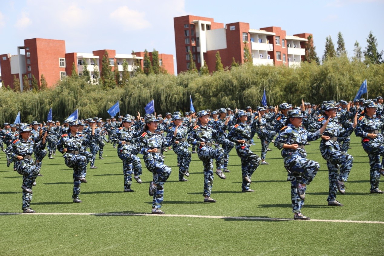 2017级新生整装待发,迎接绿茵场上的最新挑战——军训汇演。