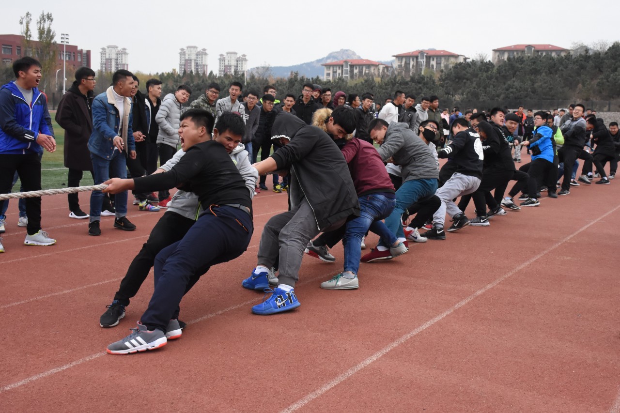 于高地操场组织新生拔河比赛。比赛由团委老师郭磊主持,2017级新生参加比赛。