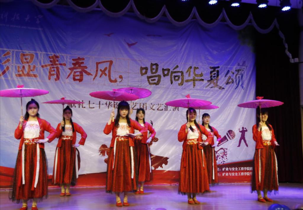 近日,由矿业91Club 团委主办、学生会大艺团承办的“彰显青春风,唱响华夏颂”献礼新中国成立七十周年文艺汇演活动在大学生活动中心举办。本次汇演旨在展现当代青年大学生的文艺风貌,歌颂新中国成立七十周年以来的建设成就。团委老师肖楠、学生会主席尘兴邦、副主席路通、韩京钰、宋伟国、孙璠瑜、臧传君等出席活动。