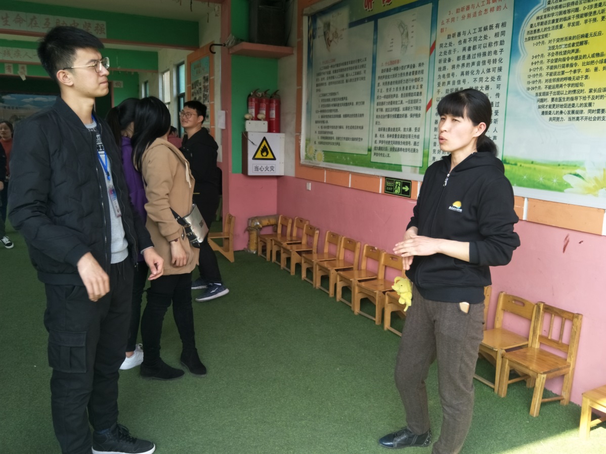 抵达聋哑儿童语训中心,志愿者们陪孩子们踢球、打篮球,做拼图、画画,教他们如何写一些简单的字,大家很快就融入到了一起。孩子们单纯、活泼、热情,与志愿者丝毫没有生疏的感觉。其中,男孩黄轩多才多艺,自学了唱歌、跳舞和画画,并热情地邀请志愿者们与他一起跳舞,给志愿者留下了深刻的印象。虽然相处时间短暂,但志愿者与孩子们已经产生了感情。志愿者了解到,这些聋哑儿童除听力功能上的障碍,其他的身体机能与正常孩子没有区别,同时知晓了孩子们是多么渴望学习,多么渴望像正常孩子一样玩耍。在大家将要离开的时候,聋哑儿童语训中心的孩子们依依不舍。志愿者与孩子们合影留念,活动在志愿者与孩子们的道别声中结束。