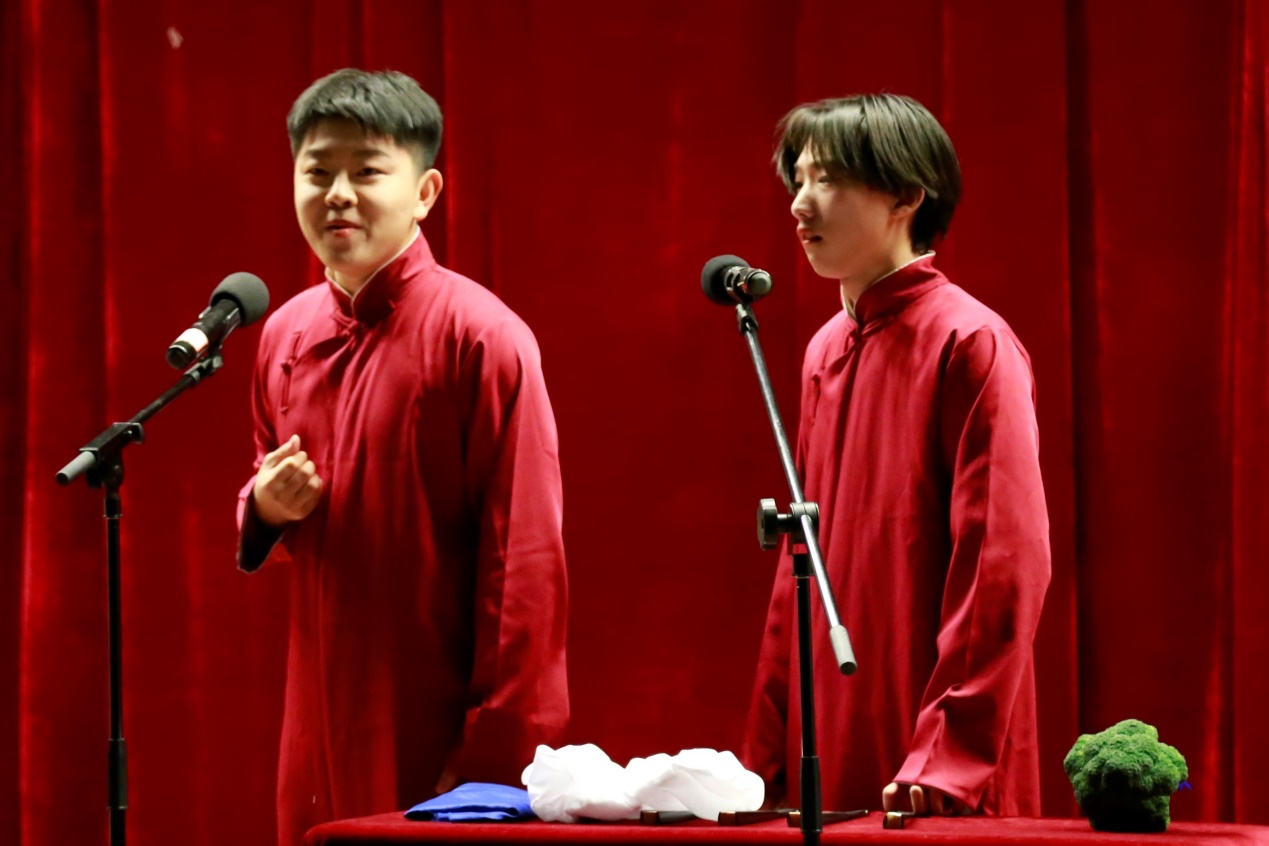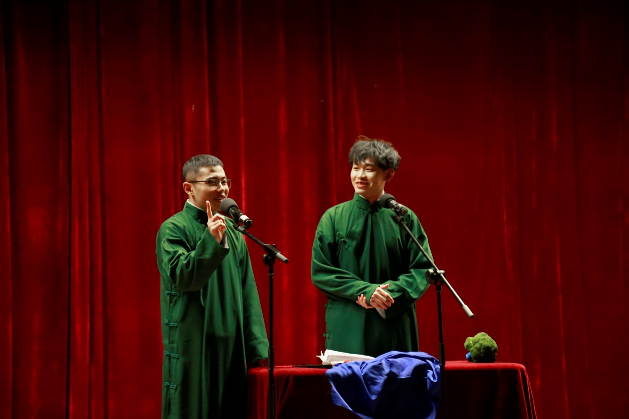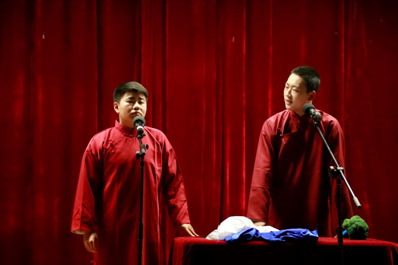 单弦流雅韵,快板奋精神,同学们的表演聚古今精髓,演绎众生百态。参演节目内容丰富多彩,有幽默俏皮的夸张故事,有喜闻乐见的日常琐事,也有内涵丰富的文学趣谈。《礼仪漫谈》强调日常礼仪的重要性;《汾河湾》展现了悠远流传的戏曲文化;《结巴论》将结巴的日常生活展现的淋漓尽致;《说学逗唱》生动幽默的诠释了相声的四门基本功;《我是文学家》诠释了现代文学的特色;由李靖,张恩源带来的《日本梆子》更以其精湛的演技,幽默的语言,让现场笑声与掌声经久不息。