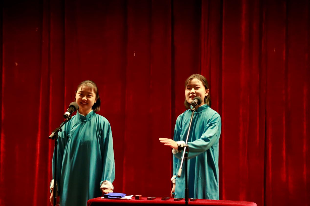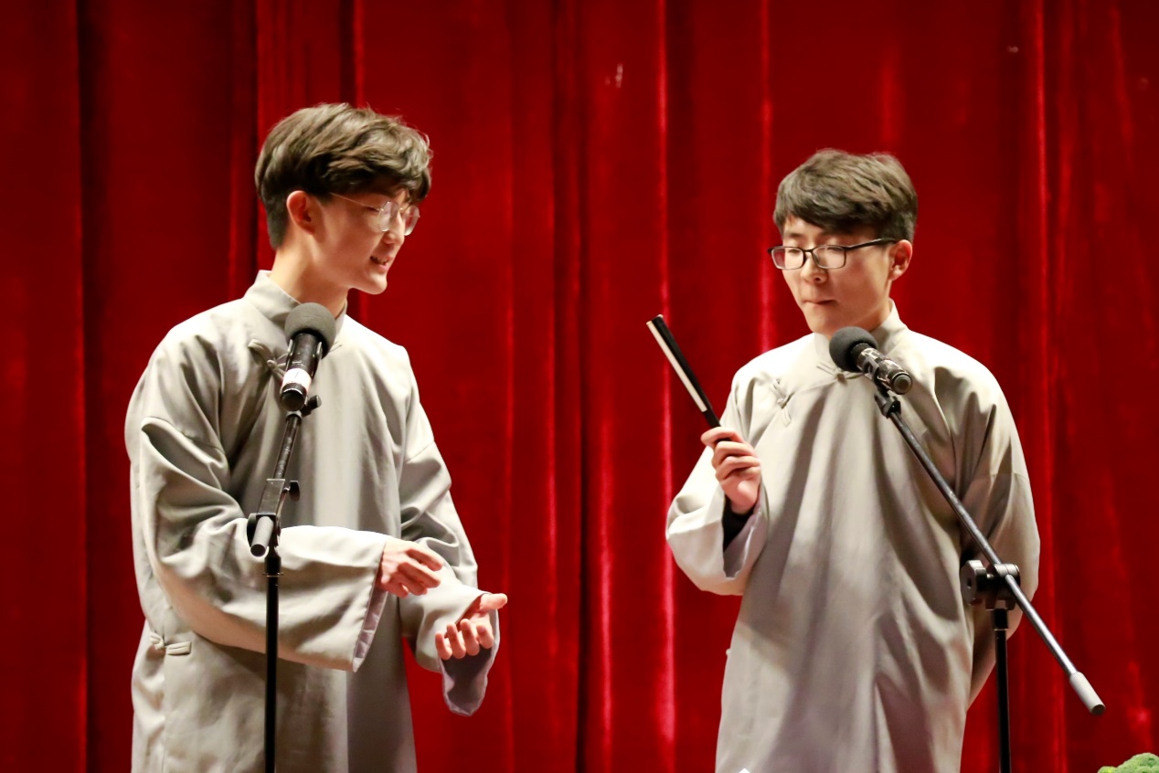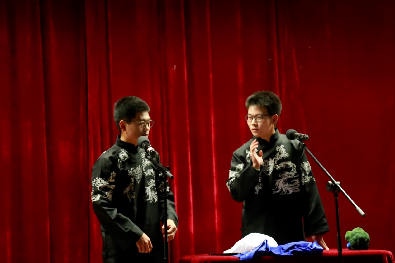 单弦流雅韵,快板奋精神,同学们的表演聚古今精髓,演绎众生百态。参演节目内容丰富多彩,有幽默俏皮的夸张故事,有喜闻乐见的日常琐事,也有内涵丰富的文学趣谈。《礼仪漫谈》强调日常礼仪的重要性;《汾河湾》展现了悠远流传的戏曲文化;《结巴论》将结巴的日常生活展现的淋漓尽致;《说学逗唱》生动幽默的诠释了相声的四门基本功;《我是文学家》诠释了现代文学的特色;由李靖,张恩源带来的《日本梆子》更以其精湛的演技,幽默的语言,让现场笑声与掌声经久不息。