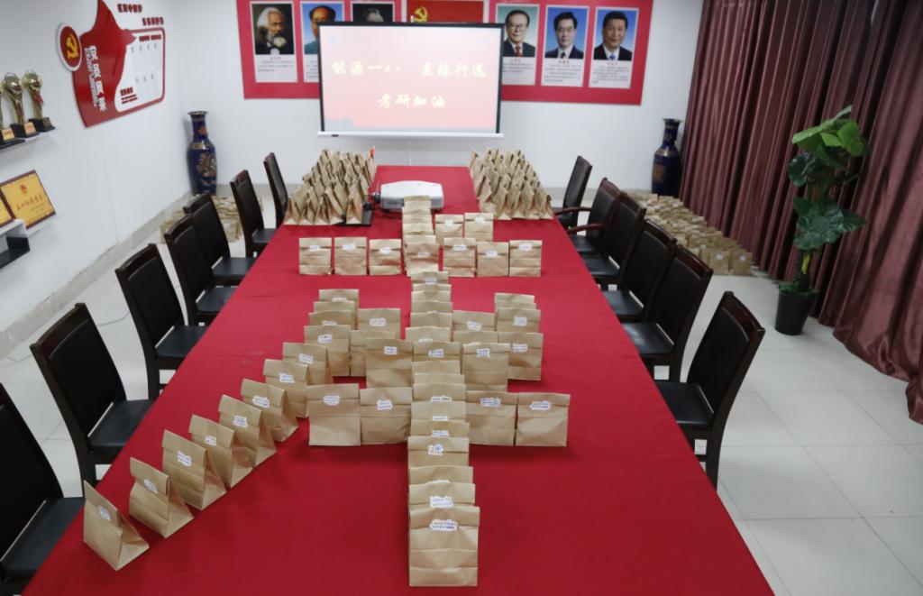 随后,现场老师为同学们送上考研助力包,其中包含牛气冲天——牛奶,精神抖擞——咖啡,一举高“粽”——粽子糖,暖心防护——定制口罩,温馨祝福——祝福卡片。小小的礼物或许微不足道,但饱含了诚挚的心意和满满的祝福,只愿同学们多一份踏实,加一份信心,在最后的冲刺阶段里无所畏惧!