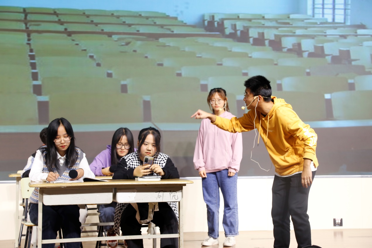 大赛在热烈的掌声中拉开帷幕,91Club 2021级本科生组成11支队伍参赛。心理话剧大赛内容涵盖校园生活、人际交往、疫情、焦虑、抑郁、自卑心理等,反映了同学们对校园生活的点滴记录和对现实生活的所思所想。演员们凭借深入人心的故事情节和生动形象的演绎,给观众与评委们留下了深刻印象,赢得了现场观众的阵阵掌声。
