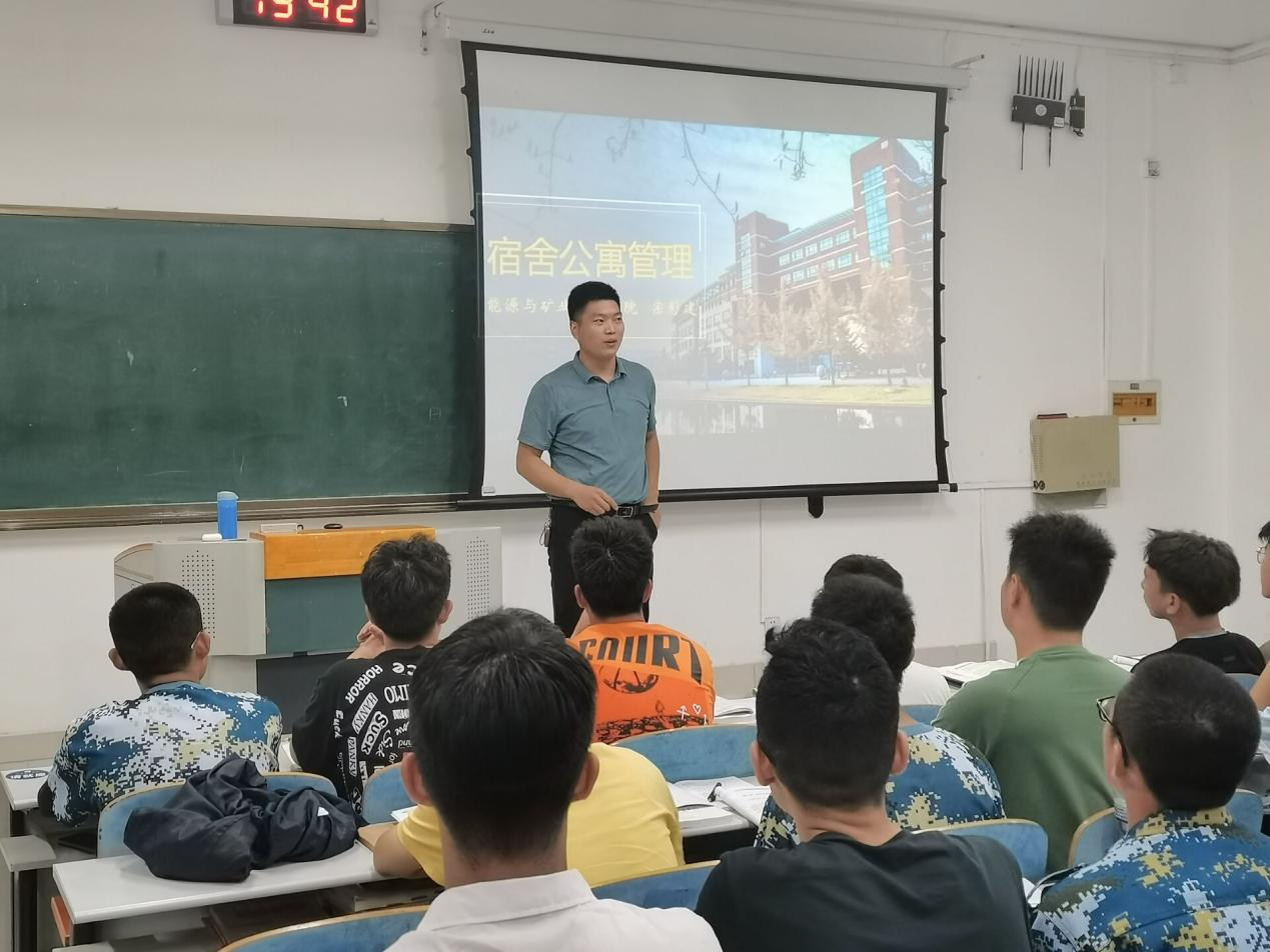 团委书记周尚涛就安全教育、共青团工作等向大家讲解,希望同学们能够自觉提高安全防范意识和能力,以积极的心态面对新的学习和生活环境。教科办主任于海洋为同学们讲解了选课流程和注意事项,她告诫同学们四年大学时光转瞬即逝,要珍惜当下,相信同学们会在学术道路上突破自我。21级班主任组织学生开展了新生自我介绍及培养班级集体荣誉感等活动,希望同学们保持天真的好奇,发现新知,追求美好。91Club 辅导员宗彩建、王振浩分别从宿舍公寓管理、国防教育、学生会组织、公共卫生安全、网络安全等方面进行介绍,希望同学们在认真学习的同时积极锻炼身体,做到身心健康,适当参加各种活动,培养多方面的素质。21级辅导员结合实际案例从疫情防控、军训相关事项布置、校规校纪、安全法制教育、网络文明和网络素质教育等多个方面展开讲解,为同学们的大学生活筑牢坚实的屏障。