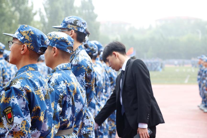 身着军装,英姿飒爽;挺直腰板,斗志昂扬。稍息、立正、齐步走……新生的动作整齐划一,口号铿锵有力。不断的彰显着舍我其谁的霸气!军训的动作,教官们一次次纠正;军训的姿势,辅导员老师们一个个查看,军训场上,不仅有你们汗如雨下的面庞,还有辅导员和教官们的关怀。