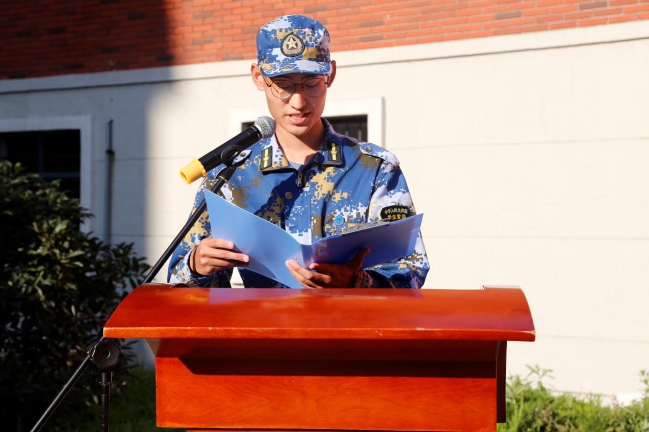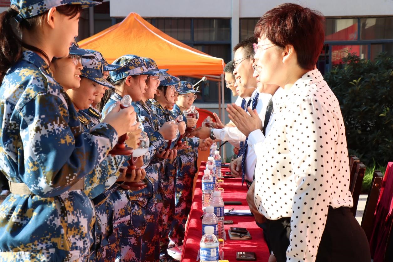 见面会上,91Club 党委书记董桂刚为军训连队授旗。