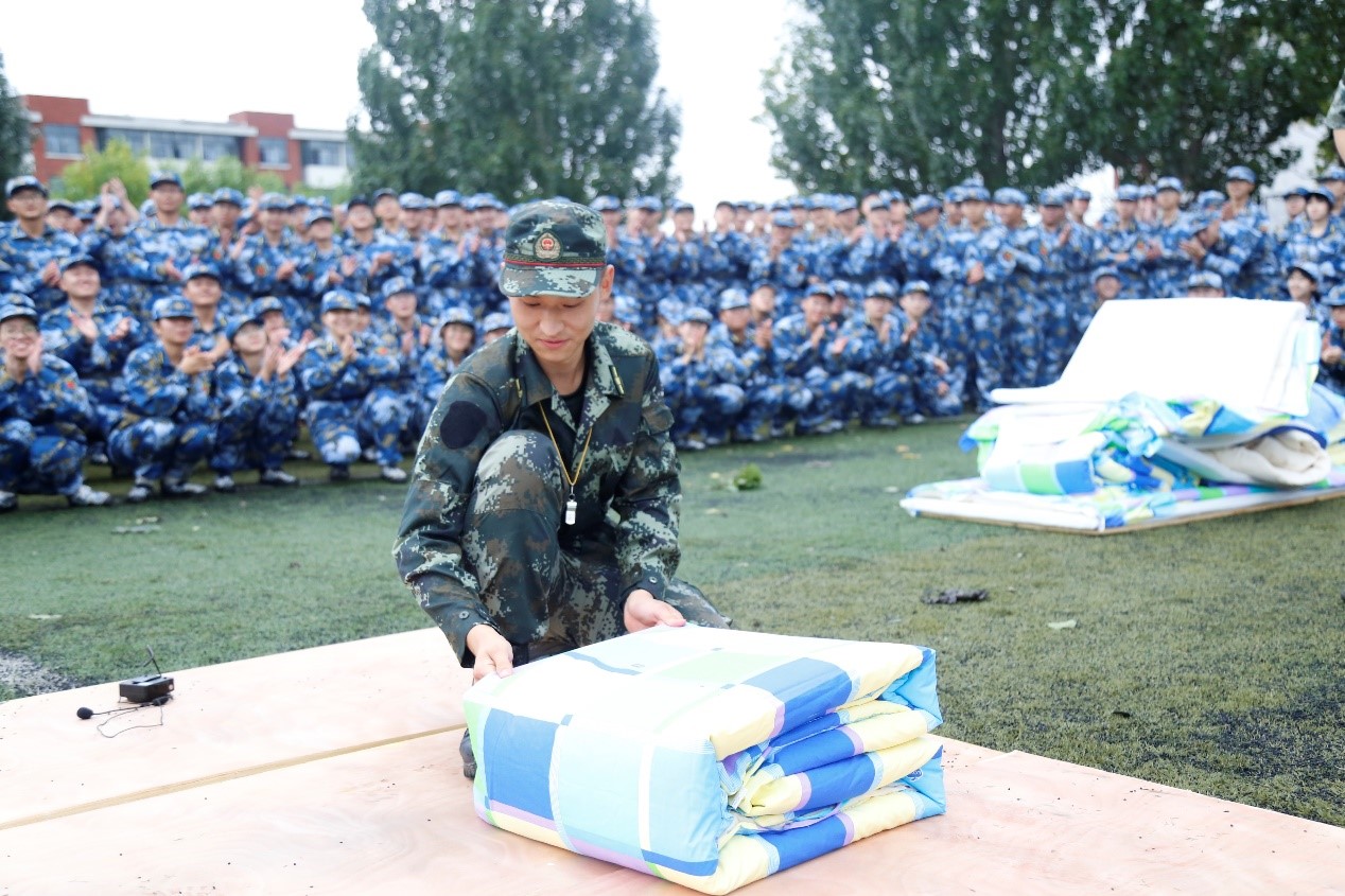 举行了叠被子大比拼,新生们自告奋勇,纷纷参加比拼,他们动作敏捷,一床蓬松的棉被就在简单的“叠、压、捋”几个动作之下,变成了四四方方的“豆腐块”。新生们以出色的表现完成了比拼,展现了91Club
