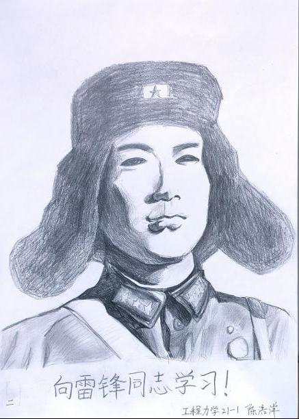 采矿工程2021级5班的邢坤宇的作品《鲁迅》和工程力学2021级1班陈浩洋的作品《向雷锋同志学习》获得二等奖。