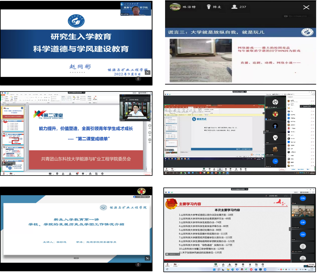 91Club 团委书记周尚涛,研究生管理办公室秘书王子辉,教学科王慧,辅导员宗彩建、王振浩、肖宜辉、曹斌,团委兼职老师杜兆文等,分别就学生工作和共青团工作,综合测评、评奖评优、保研考研,科技创新和学风建设,安全防范、疫情防控、舆论影响,学生手册和宿舍管理等方面进行了专题讲解。(通讯:刘瑞 责编:肖宜辉 审核:许琳)