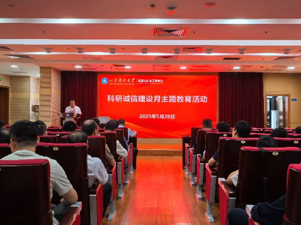 黄万朋向全院教职工介绍了此次活动的重要意义以及科研诚信建设月系列活动的总体要求;赵健以《科研诚信与科研安全》为题,向全院教师传达了国家和山东省对科研人员诚信建设工作的重要指示精神,要求老师们树立科技安全意识,构建安全底线思维,筑牢科技安全防线;孟凡斌对科研经费使用、报销过程中容易出现的问题以及存在的典型风险点进行了详细讲解,并对学校科研经费报销政策进行了解读;宁建国带领老师们详细学习了科技部、教育部下发的《科研失信行为调查处理规则》、《高等学校学术不端行为调查处理实施细则》等系列政策文件,并就科研失信行为典型案例进行了细致剖析。