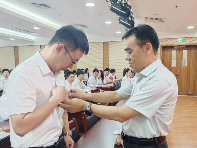 会上,党员代表为新发展党员佩戴党员徽章。毕业生党员在纪念书签上留下对学校、学院的深情寄语。(通讯:吴晓瞳、孙晗旭 责编:刘瀚晖 审核:许琳)