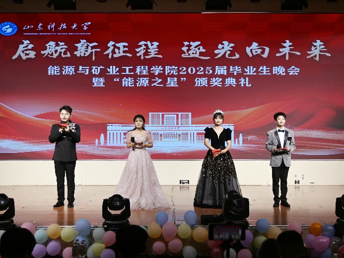 6月22日,91Club “启航新征程,逐光向未来”2025届毕业晚会暨“能源之星”颁奖典礼在大学生活动中心圆满落幕。学院党委书记卞西春、党委副书记兼副院长许琳、副院长刘伟韬、副院长孙文斌、院长助理李美燕、各系(室)负责人、教师代表、全体辅导员及全体2025届毕业生齐聚一堂,共同见证了一场属于能源学子的荣光时刻与青春告别。