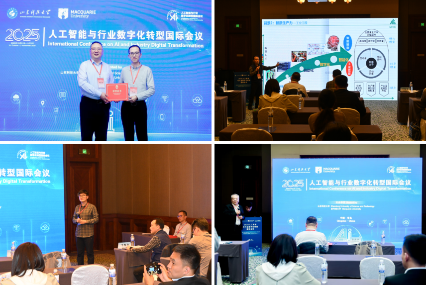 为了更好地推动跨学科融合与创新,工业工程系在“2025人工智能与行业数字化转型国际会议”中组织了专题为“AI赋能行业精益数智转型与新质生产力发展”特邀报告分论坛。特邀《Computers & Industrial Engineering》SCM领域主编、麦考瑞大学商学硕士供应链管理学科主任史杨焱(Peter Shi),上海绿黑板数字科技有限公司首席专家兼总经理、上海机械工程学会工业工程专业委员会副主任委员李晚华,哈尔滨工业大学(威海)经济管理91Club 院长助理朱建华,91Club 工业工程系副教授卢国志做报告,围绕AI赋能数字金融、精益数智化人才培养、制造资源动态优化、矿山压力智能分析等领域分享了前沿洞见与创新成果,为行业精益数智转型与新质生产力发展贡献智慧和力量。