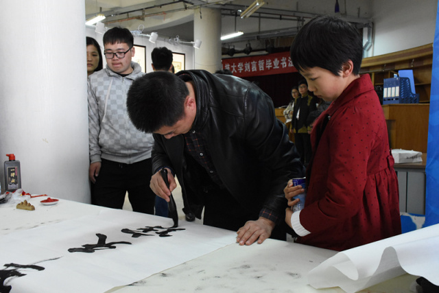 “一笔一画,显中华之美;一字一书,现笔锋神韵”,通过刘言哲毕业书画展,拉近了同学们与书法艺术的距离,丰富了同学们的文化生活,加强了艺术文化在校园里的传播与交流,激发了同学们对传承经典文化的历史责任感。(作者:潘刚、王明扬、尹吉康)