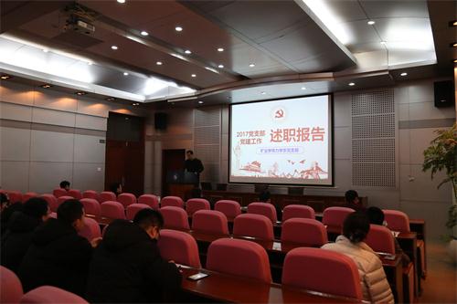 1月15日下午,矿业学院组织召开2017年度党支部书记抓党建现场述职评议会,党委、学校办公室副主任庄兴华到会指导,学院领导班子成员、各科室负责人、各党支部书记、系主任及师生代表参加了会议,会议由院党委书记梁赛江主持。