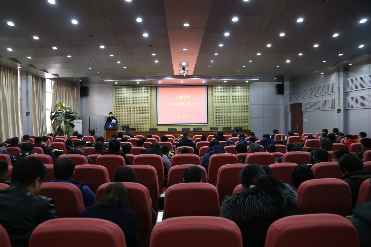 1月11日下午,矿业学院在J4-101报告厅召开中层领导班子及处级干部考核会议,考核组成员李晓静、冯阳和学院全体教职工参加了大会。