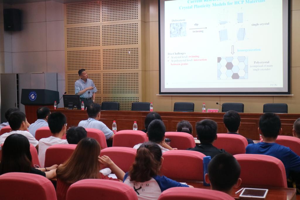 在J4-101学术报告厅,吴沛东教授进行了精彩的学术报告,报告主题为“Deformation and Formability of Aluminium Sheet Alloys (铝合金板材变形行为及成形性能)”,二百余名师生到场聆听了报告。