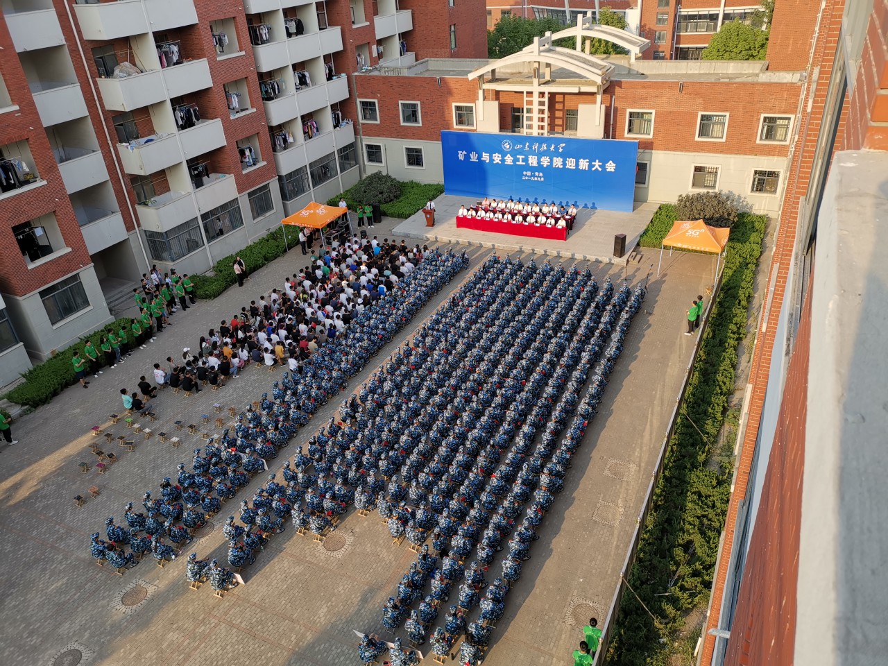 9月1日下午,矿业学院在学子广场隆重召开2019级迎新大会。学院党委书记董桂刚、院长谭云亮以及其他领导班子成员、各系主任、科室负责人、教师代表、校友代表、新生家长代表及全体辅导员老师出席大会,大会由学院团委书记马鹤主持。