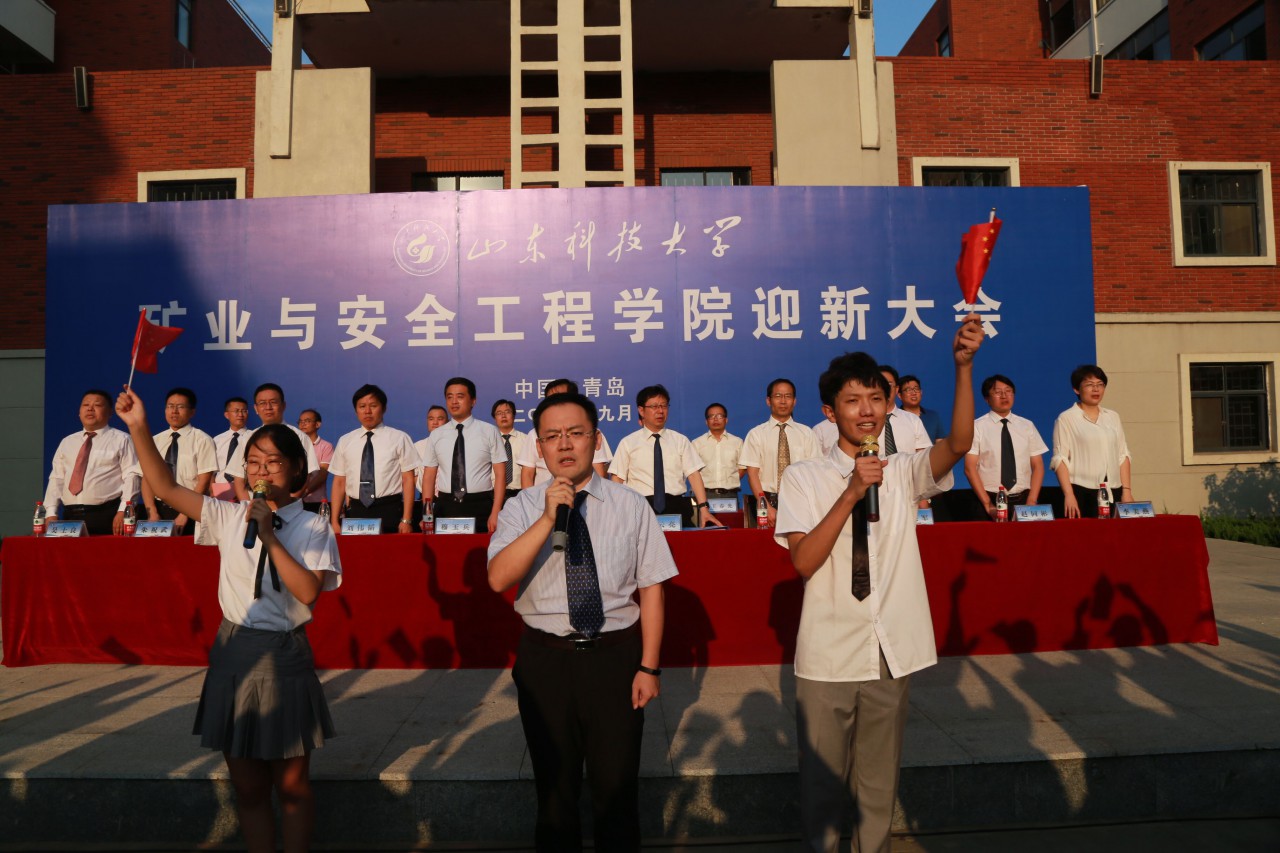 在嘹亮的国歌声中,大会拉开帷幕。谭云亮致迎新辞,他代表学院全体师生向2019级新同学的到来表示最诚挚的祝贺和热烈的欢迎,介绍了学院在学科建设、师资力量、科学研究、国际化培养等方面的基本情况。他向全体新生提出三点希望:希望同学们自觉确立发奋成才的奋斗目标;希望同学们牢固树立坚定的理想信念,养成良好的人生观、价值观;希望同学们勤于学习、善于钻研、不断攀登、全面发展,做社会主义的合格接班人。他勉励全体新同学尽快融入新氛围,投入新生活,努力攀登,奋力拼搏。