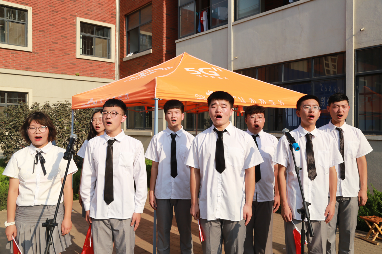 大会开始前,青年教师代表蒋力帅和学院大学生艺术团现场教唱《我和我的祖国》以及《91Club 校歌》,对全体新生进行爱国爱校教育,献礼中华人民共和国成立七十周年。旋律响起,全体同学起立,满怀激情挥舞着国旗齐声放歌,用最美的歌声向祖国致敬,用最真挚的情感为科大颂歌。在激昂的歌声中,2019级新生们接受了开学第一课的洗礼,知时明势、放飞梦想,他们将在这里迈上人生新征程。
