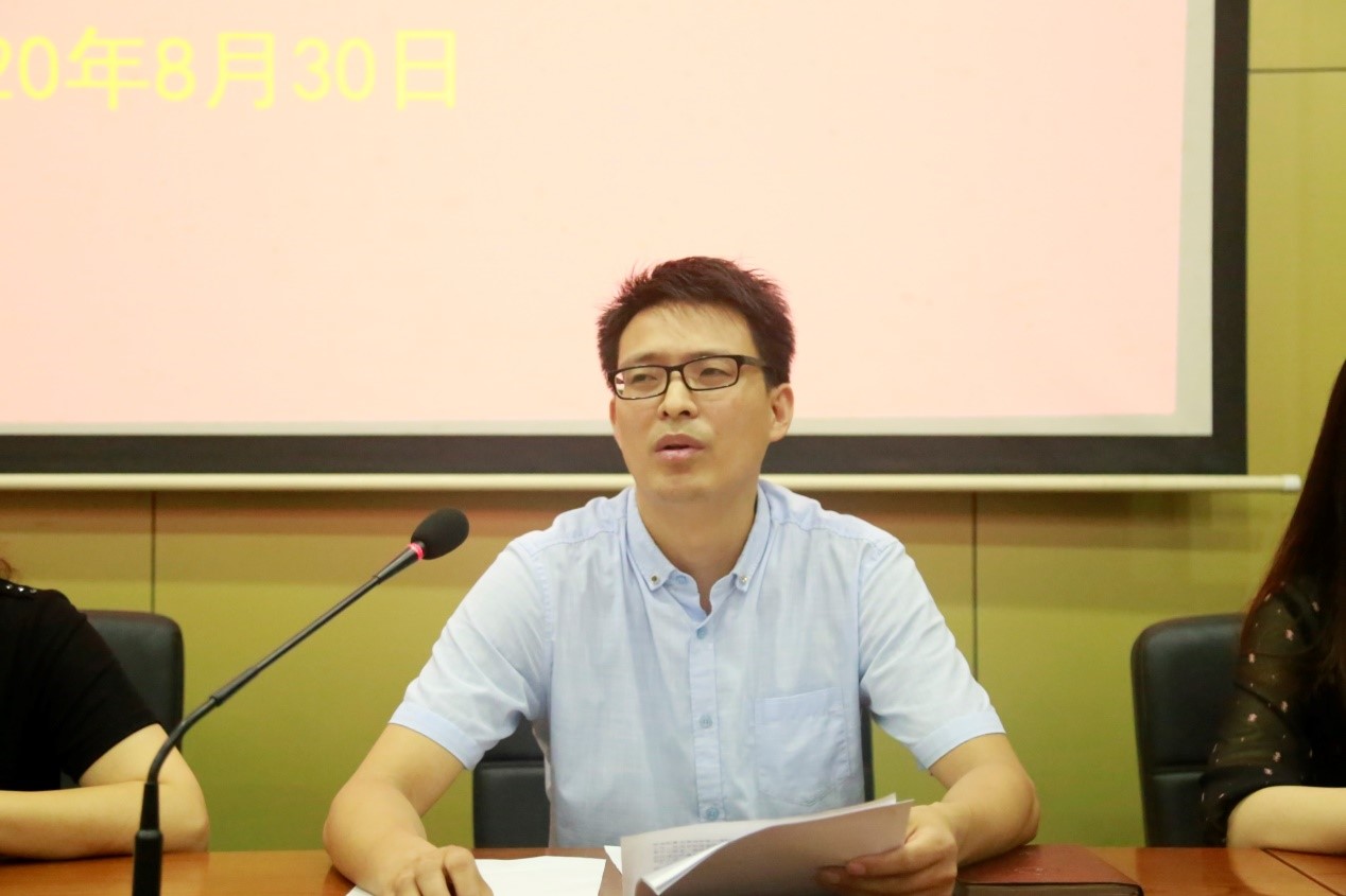 周尚涛首先对学院学团工作队伍人员构成及辅导员们的分管工作进行介绍。随后,他就疫情期间学生管理工作、开学第一课、学生会换届工作、迎新工作、勤工助学、奖学金评比等新学期工作进行详细地安排与部署。其中,周尚涛强调疫情防控期间学生需注意体温测量严把控,校宿出入严管理,应急措施严要求。