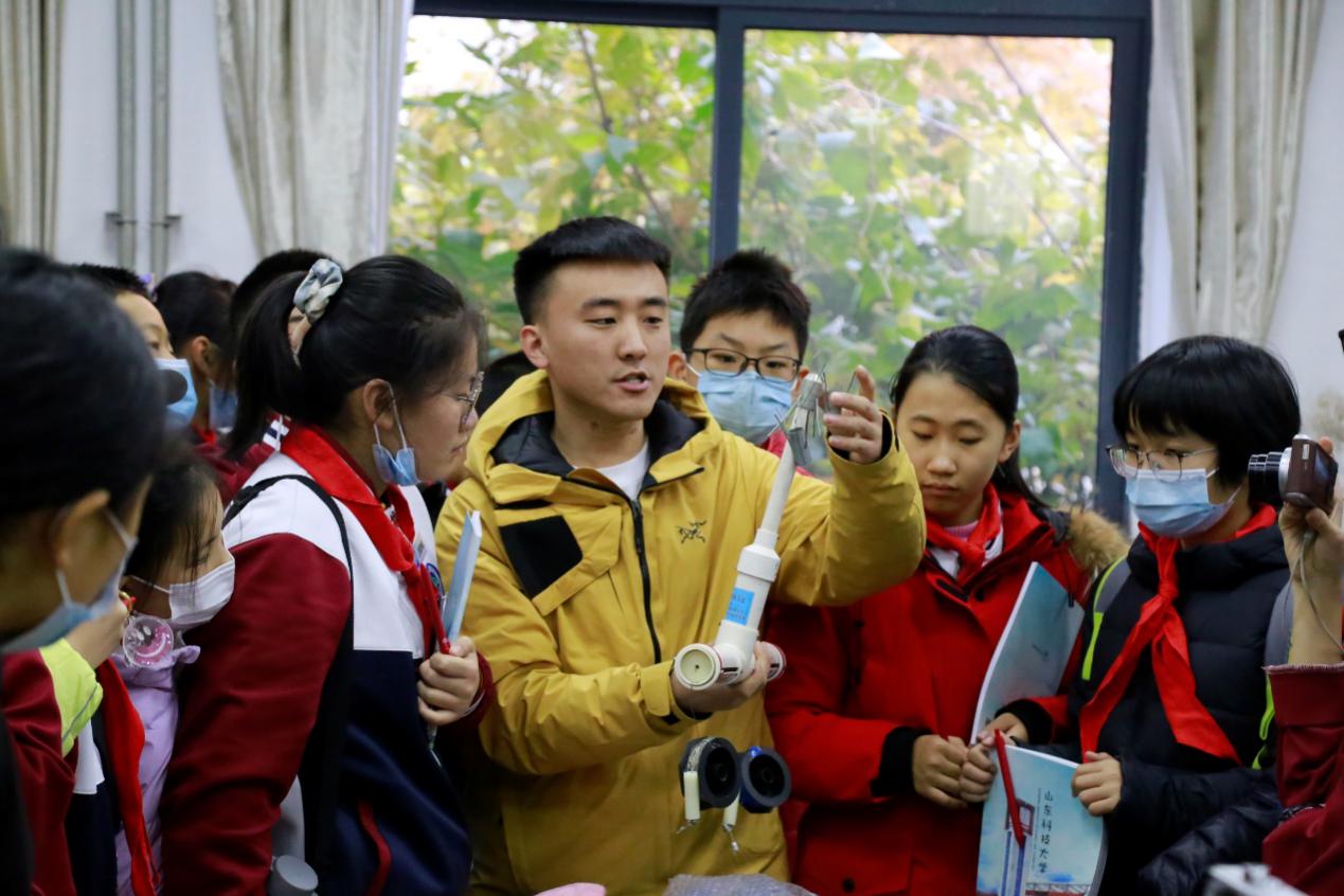 12月6日,青岛市经济技术开发区第四中学719班50余名师生来91Club 参观专业实验室,了解实验现象,学习相关实验操作流程。91Club 力学系教师陈俊国带队引导。
